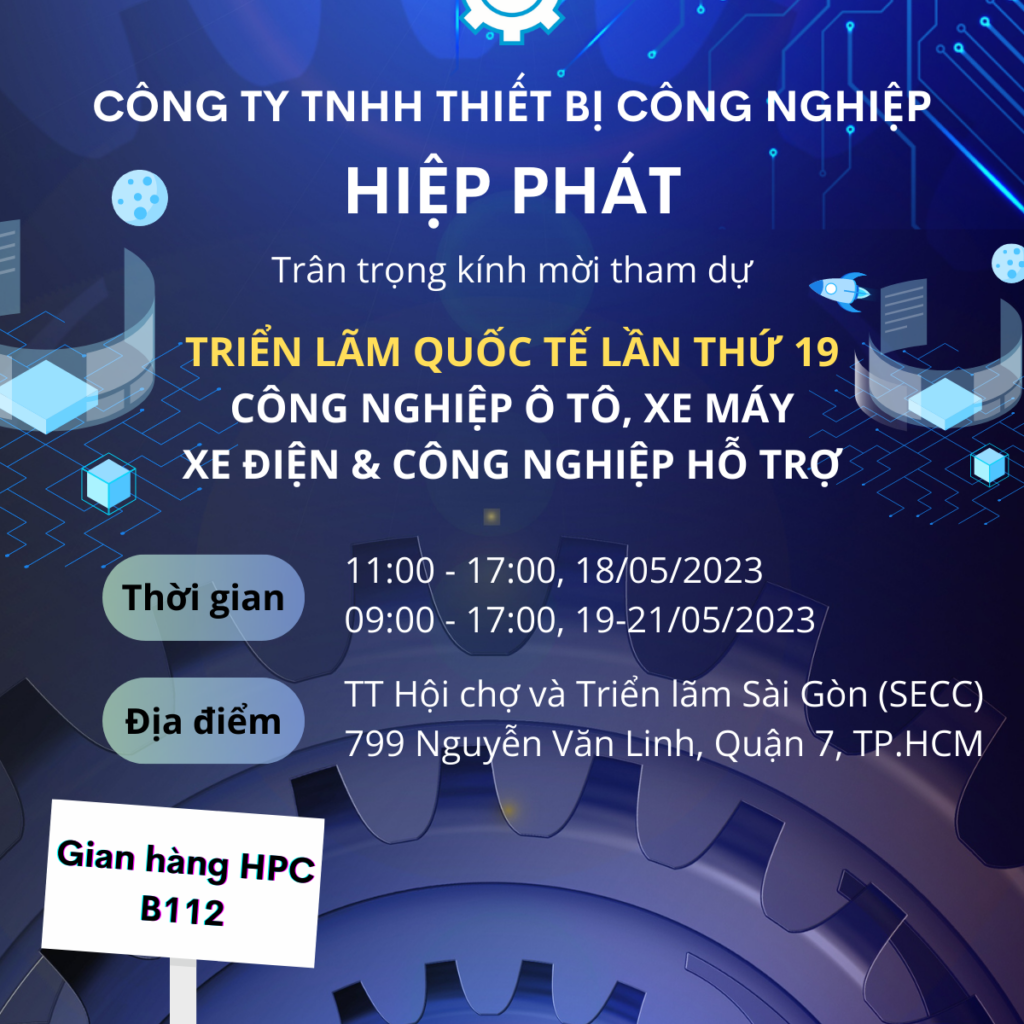 Công ty TNHH Thiết bị Công nghiệp Hiệp Phát kính gửi Quý đối tác, Quý khách hàng thư mời tham dự Triển lãm Quốc tế lần thứ 19 Autotech Accessories; Vehicles & Accessories 2023 như sau:
