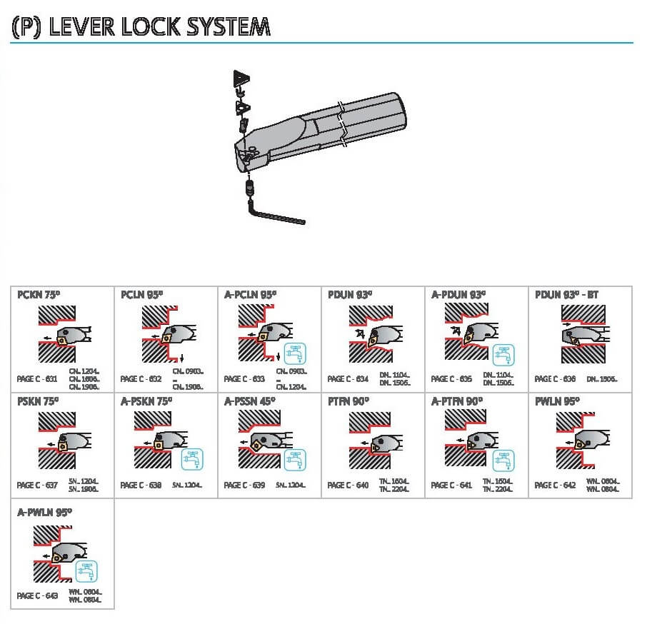 Cán dao tiện móc lỗ Palbit với 6 loại khác nhau, có thể lắp đặt các mảnh dao CCMT, CCGT, DCMT,…ứng dụng tiện mặt, tiện biên dạng.
