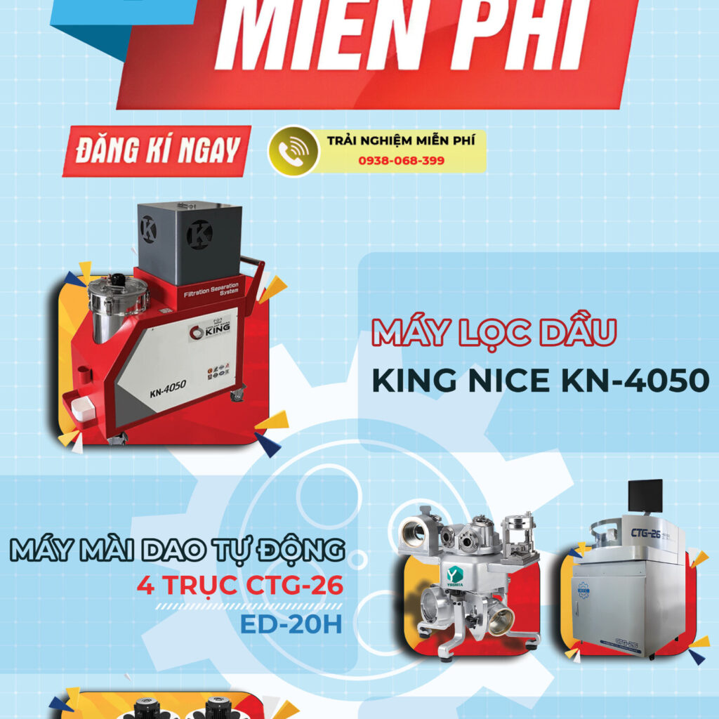 - Máy lọc dầu King Nice: lọc được các cặn bẩn, những hợp chất nổi trên bề mặt dầu, những tạp chất rắn lơ lửng, làm sạch váng dầu trong các máy CNC.