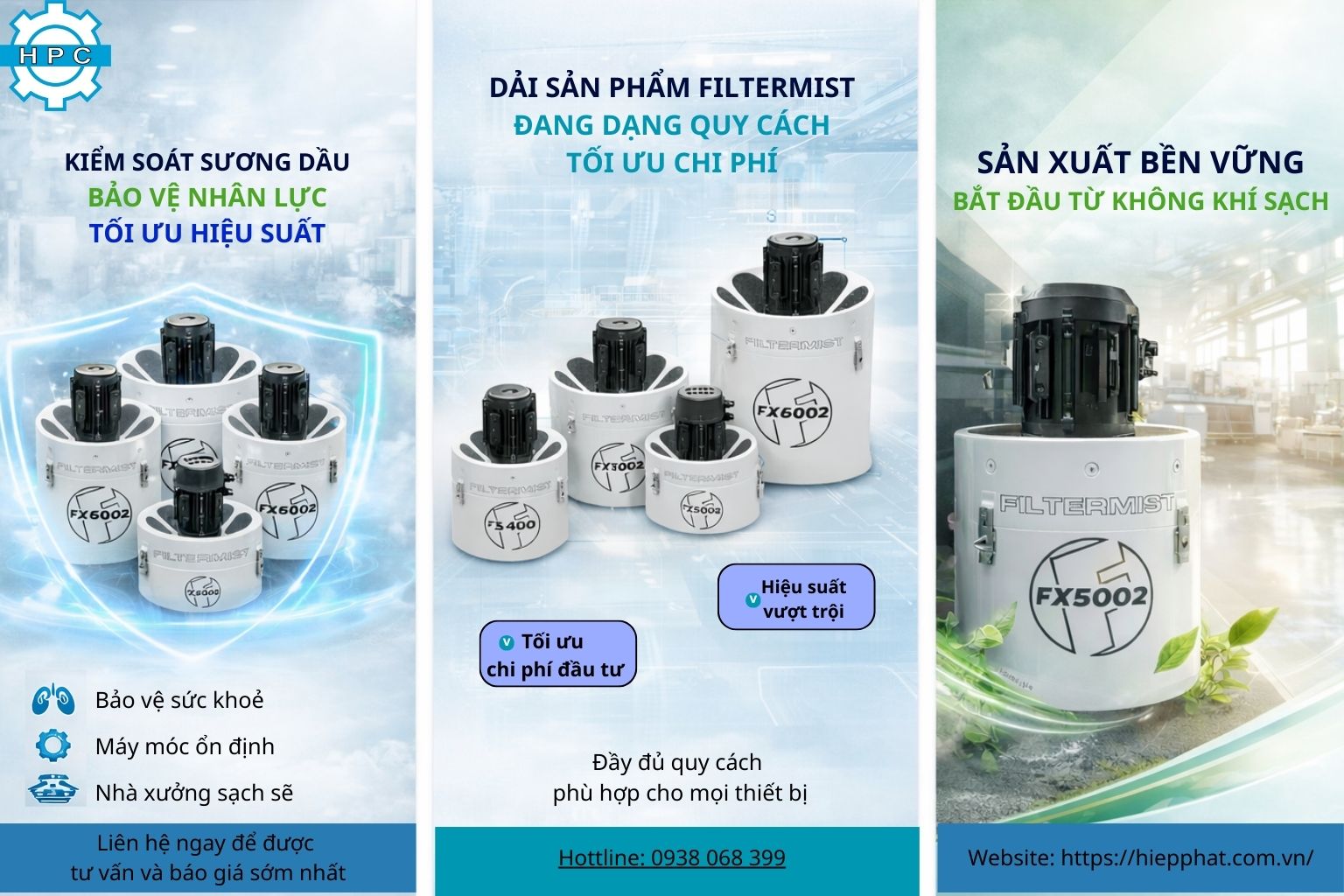 Với kinh nghiệm cung cấp giải pháp cho ngành gia công cơ khí chính xác, HPC đồng hành cùng khách hàng trong việc đánh giá hiện trạng, tư vấn lựa chọn và triển khai máy hút sương dầu Filtermist phù hợp cho từng loại máy và quy mô nhà xưởng. Mục tiêu không chỉ là bán thiết bị, mà là mang lại một môi trường sản xuất an toàn, hiệu quả và bền vững cho doanh nghiệp.