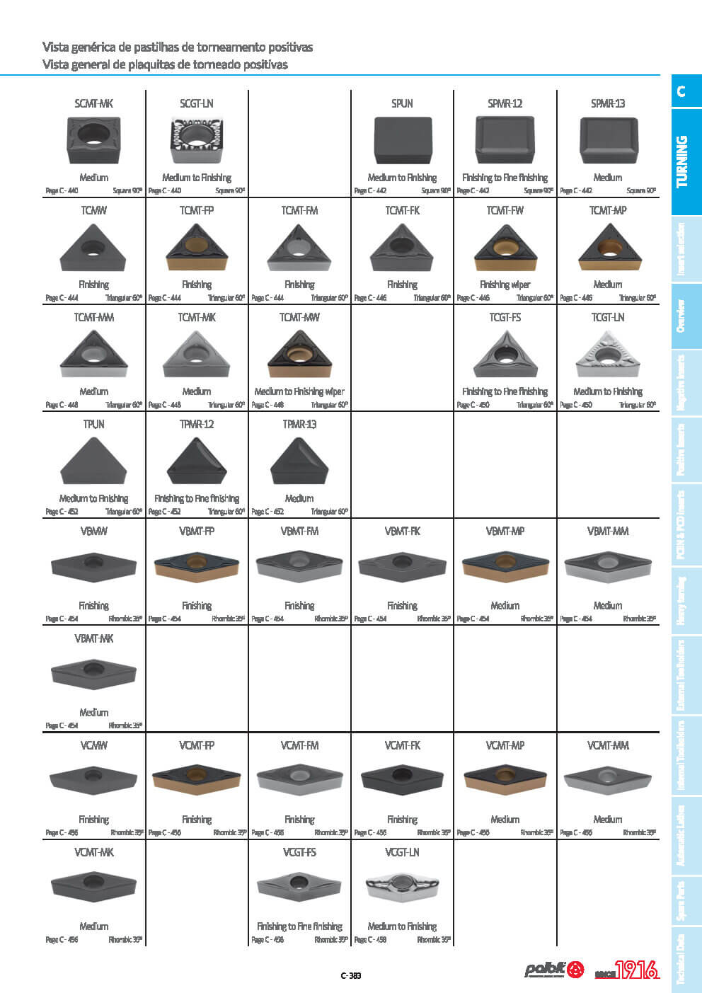 Palbit có đủ các loại phổ thông trên thị trường: CCMT.., CCGT..,DCMT.., DCGT.., RCMT.., RCMX.., SCMT.., TCMT.., TCGT.., VBMT.., VCMT.., VCGT..,…