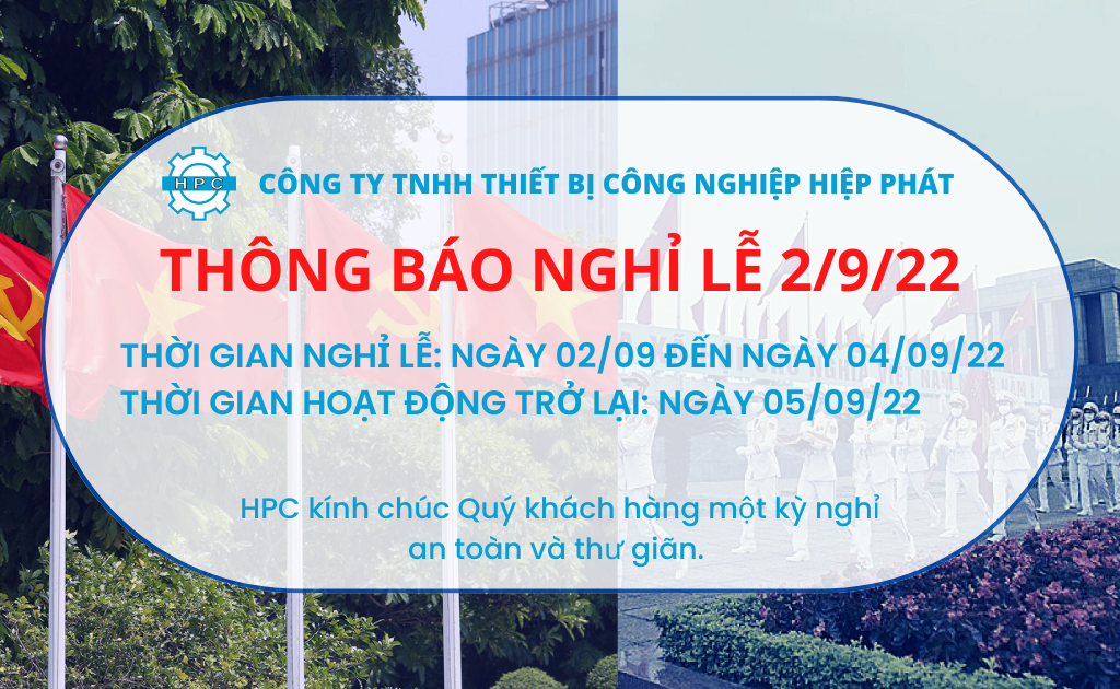 Công Ty TNHH Thiết bị Công Nghiệp Hiệp Phát xin trân trọng thông báo đến Quý khách hàng và Quý đối tác lịch nghỉ lễ 2/9/2022 như sau:
