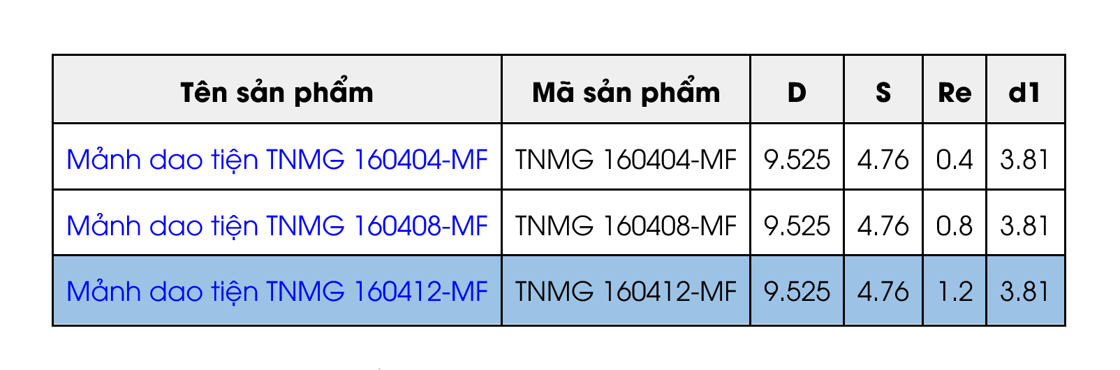 Mảnh dao tiện TNMG 160408-MF |