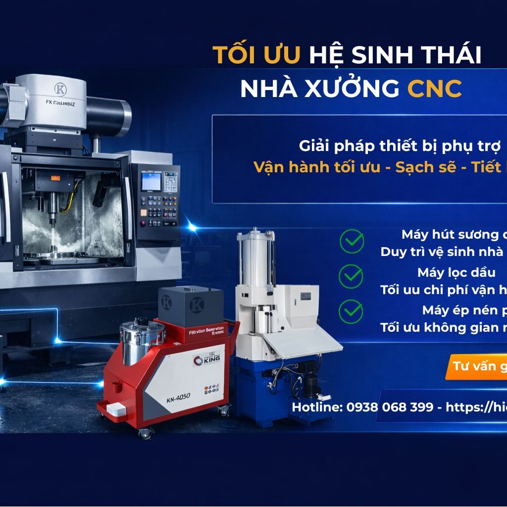 Khi nhắc đến đầu tư cho gia công CNC, phần lớn doanh nghiệp tập trung vào máy móc chính như máy phay, máy tiện hay trung tâm gia công hiện đại. Tuy nhiên, để một nhà xưởng vận hành ổn định, đạt năng suất cao và duy trì tuổi thọ thiết bị lâu dài, các thiết bị phụ trợ lại đóng vai trò vô cùng quan trọng.